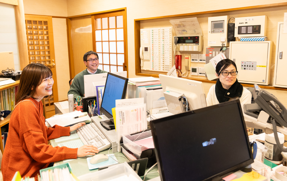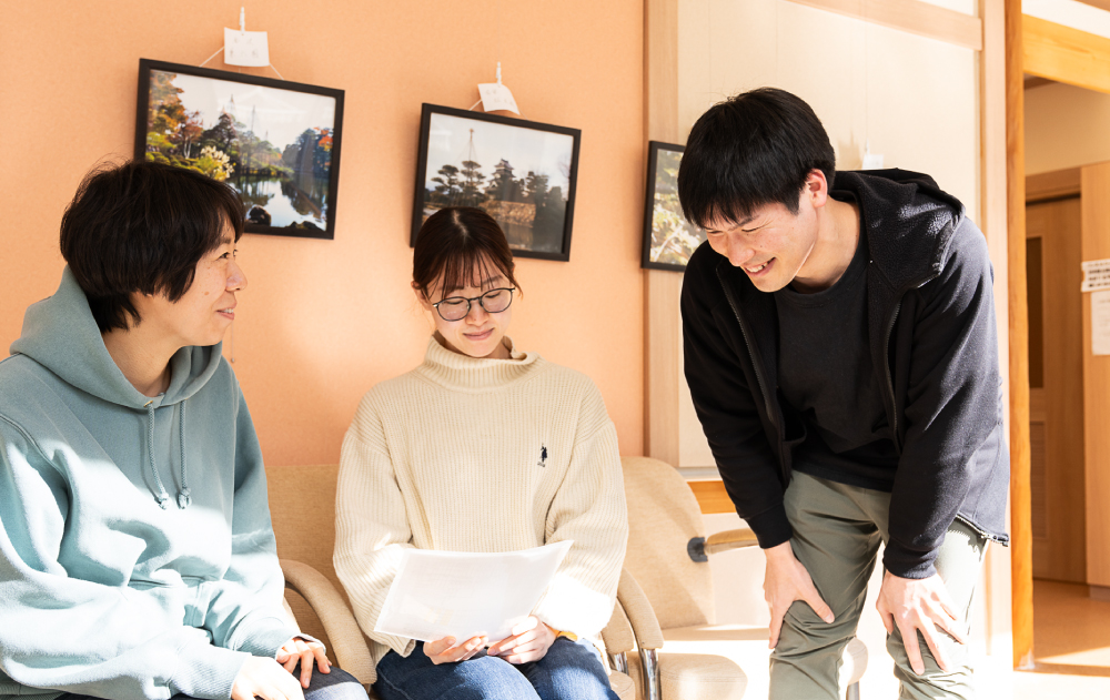 駿河会では、幅広い年齢の職員がいるため先輩・後輩・同期・職種関係なく、気軽にキャリアアップの悩みなどについて相談ができる環境を整えています。若手職員を対象にした、人間関係満足度アンケートでは、 100%の実績を誇っています。