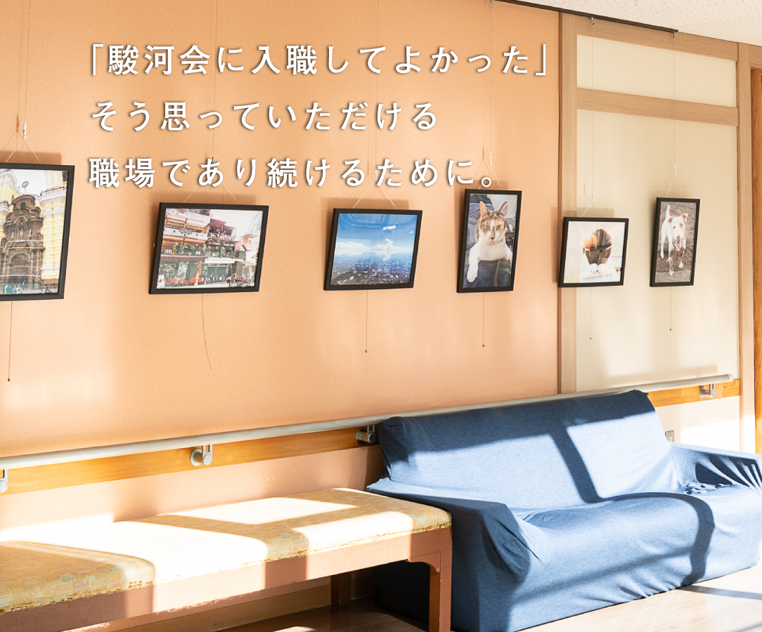 高齢者分野の法人を探している中で駿河会を知りました。インターンシップでは入職後に挑戦したいことを聞いてくださり、「自分らしく生きる」を実現できる法人だと感じました。先輩職員の方と個別で話す時間もあり、一人ひとりと向き合い、就活生が抱える不安を受け止めてくれる優しさから、この法人で働こうと決めました。