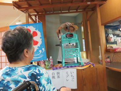 かき氷屋さんが屋台を引いてショートステイまでやってきました★