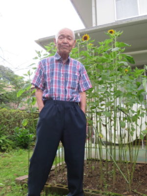 庭の向日葵がたくさん咲いていたので、外に出てみんなで眺めました🌻