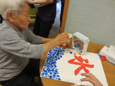 今日はかき氷の旗が見当たらず、利用者様と一緒に作ることにしました。