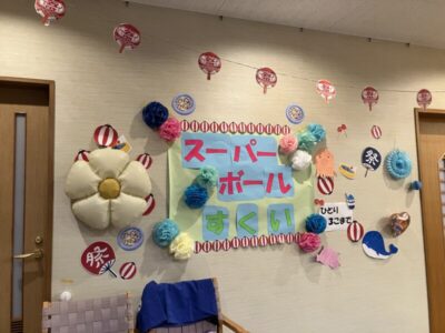 準備の際に利用者の皆さんに切ってもらった提灯もたくさん飾って盛り上げました♪