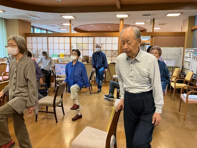 「今日は散歩へ行けそうかな。外の空気を吸ってみよう」とおっしゃる利用者様も増えてきました。アスファルトの道だけではなく、砂利やデコボコ道でも踏ん張れる力をつけるために、理学療法士よる転倒予防体操講座を開催しました。