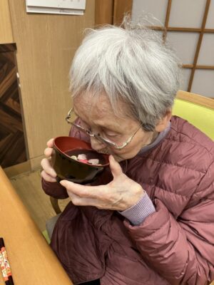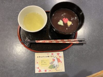 今回は、お汁粉と、ご利用者様から頂いた新茶
