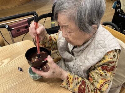 今回は、お汁粉と、ご利用者様から頂いた新茶