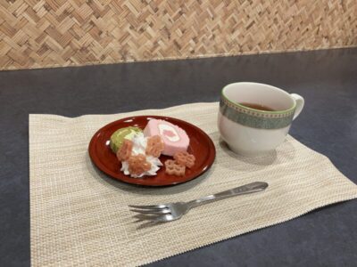 抹茶と、桜のロールケーキの二種類用意しました。