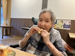 大きな口で一口、味は「おいしいね」と喜んでいました