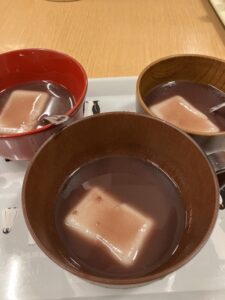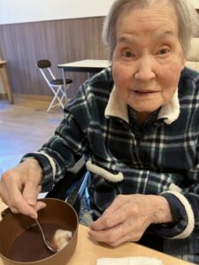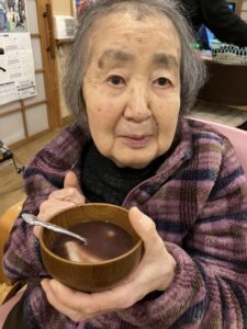少し前の話になるのですが2月、まだまだ寒いことが多い日が続いていた時に栄養士がひなげしでお汁粉を作ってくれました