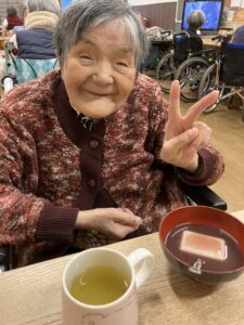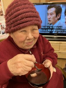 温かくおいしいので入居者様はにっこりしていました