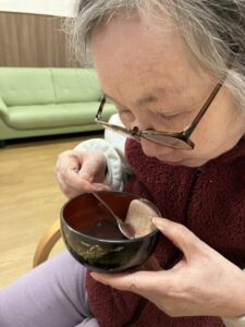 お汁粉とてもおしいしいね(^^♪と喜んで食べていました