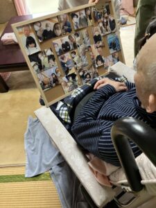 ご家族が、懐かしい写真をたくさんコルクボードにはってくださり、ご本人に語りかけてくださいました。